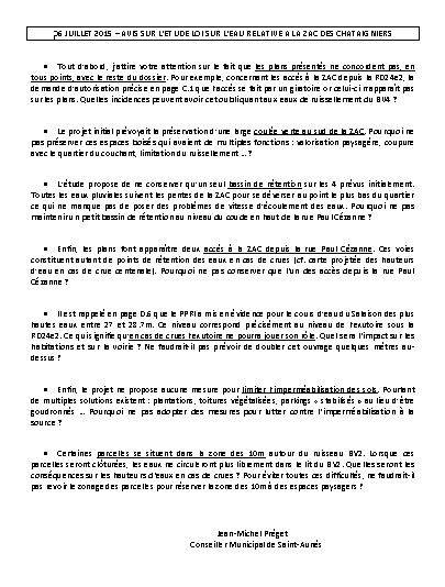 Voici les observations consignées par Jean-Michel Préget dans le registre d’enquête.