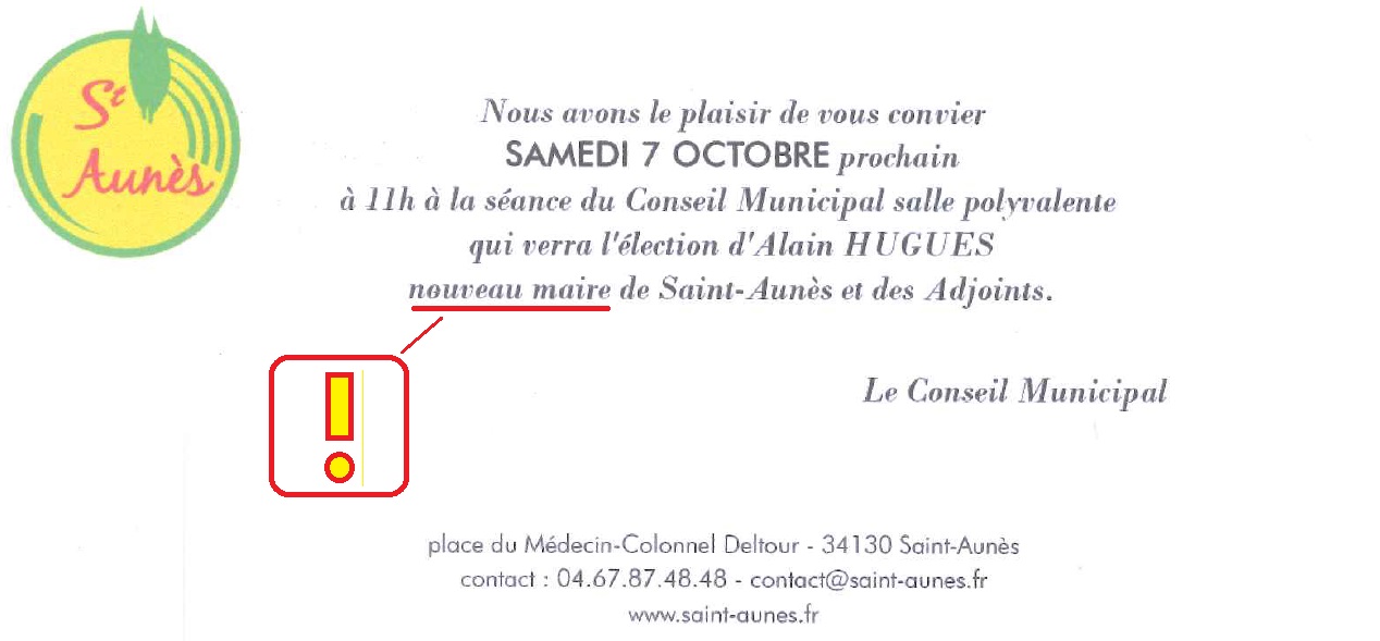 - Alain Hugues est élu maire de Saint-Aunès ; voir le compte rendu ci-contre.