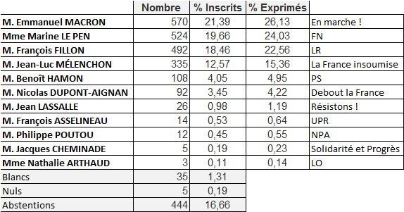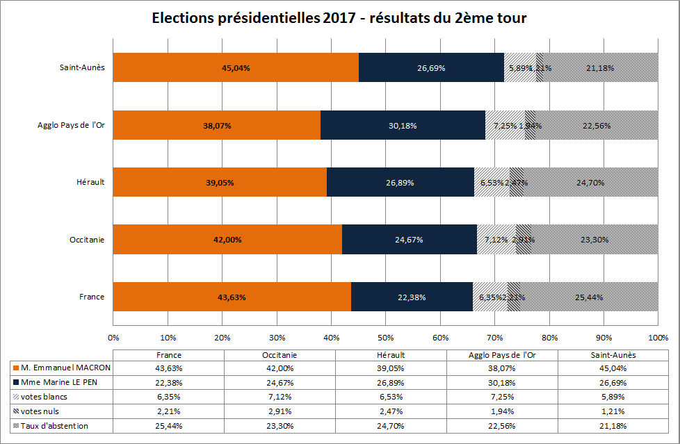 Citoyenneté Élections Présidentielles 2017 24 mai 2017 admin 619 Views élection, Présidentielles 1er tour Résultat pour la commune de Saint-Aunès (2665 inscrits). Résultats comparés 2ème tour Résultat pour la commune de Saint-Aunès (2649 inscrits). Résultats comparés