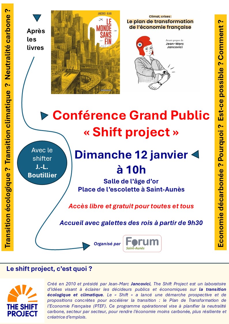 Transition écologique, neutralité carbone, transformation de l'économie, la BD "un monde sans fin"...ces sujets vous intéressent ? Cette conférence "shift