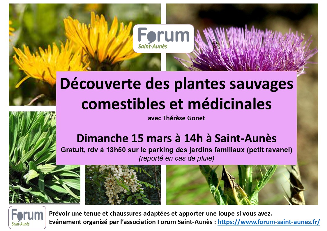 Depuis le parking des jardins familiaux du petit ravanel (https://maps.app.goo.gl/MmmvPWpWHTo4K9oh6), découverte des plantes sauvages comestibles avec Thérèse Gonet pour la 4ème année consécutive. Attention, le terrain sera surement humide, prévoyez des chaussures et une tenue adaptée. Pique-nique possible sur place avant l'événement (repas tiré du sac) sur les tables et planchas disponibles Sortie gratuite, ouverte à toutes et tous mais plutôt destinée aux adultes (les enfants peuvent jouer aux alentours)