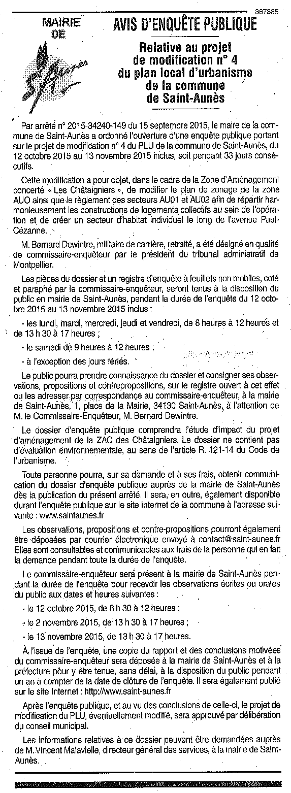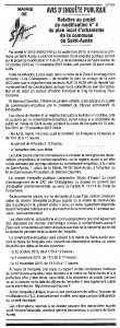 10/2015 – ouverture de l’enquête publique relative à la modification du PLU