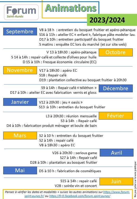 Programme des animations de Forum Saint-Aunès en 2023-204